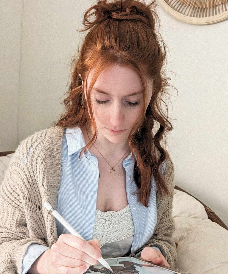 Moi, c'est Ludivine. Je réalise des illustrations pleines d'amour et de douceur pour les transformer en stickers, cartes, marque-pages, porte-clés et autres trésors. Pour en apprendre plus sur ma façon de travailler, c'est par ici. ✿